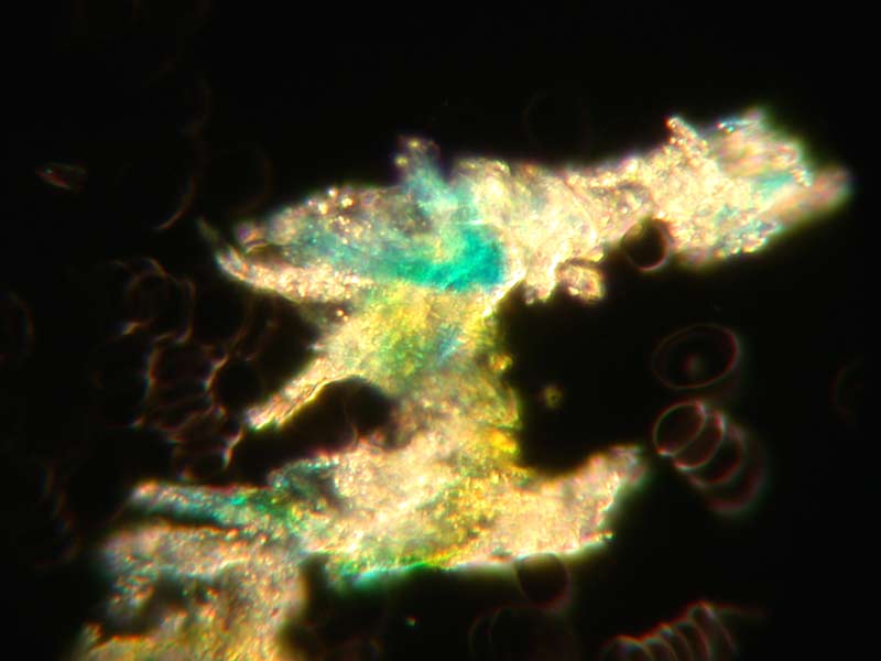 Jeune homme de 27 ans. Surcharge vitaminique. Ce dernier absorbait plus de 12 comprimés par jour de formule diverses de synthèse. Pseudo cristal tricolore.